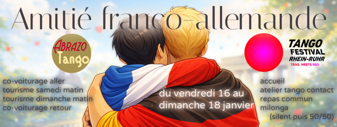 Nous sommes invités le samedi après-midi et soirée par nos amis Allemands afin de fêter l'amitié franco-allemande et le tango contact le samedi 17 après-midi et soir à Wuppertal.